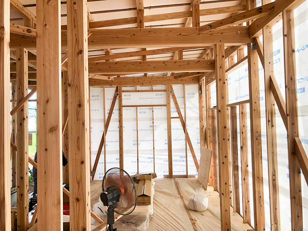 これから外部サッシ、外壁が施工され、外部の出来上がりが見えてきます。