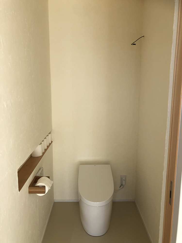 トイレの壁・天井は施主のDIYできれいに仕上がっています。結構苦労したようですが・・・これも良い思い出になりますよね。