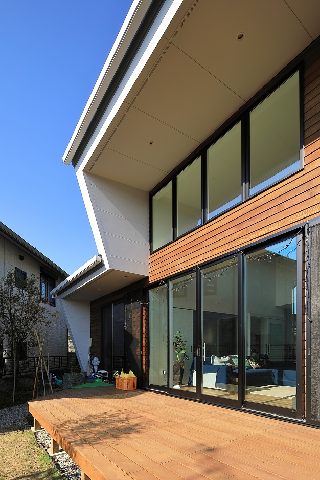 デッキや庭や空が見えて視線に広がりがあって心地よく