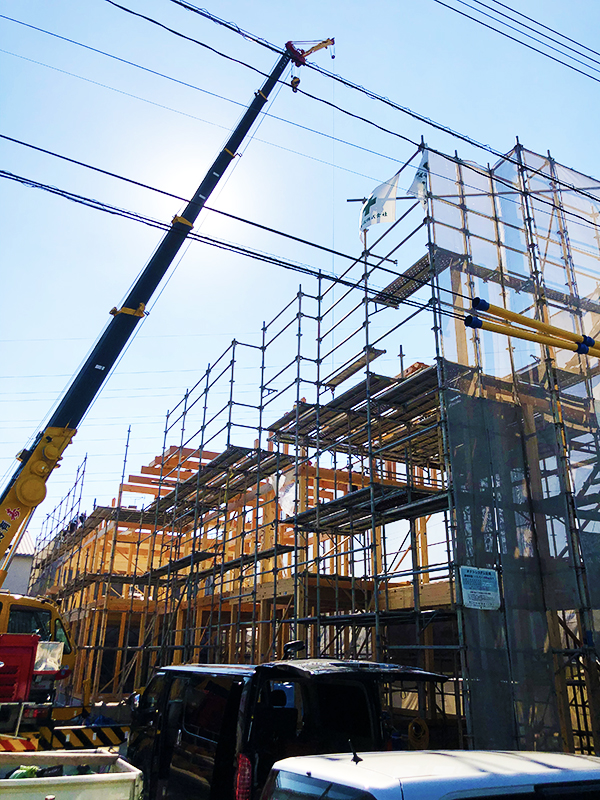 若い大工さんが多く、一日でほぼ組みあがりました!祝上棟!